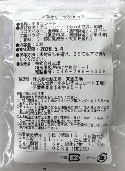 東金市が推進する「オリーブ産地化プロジェクト」の取り組みとして、地元の大人気店「たぶん…世界一小さいチョコレート工場(株式会社餅工房)」の協力のもと、オリーブ葉を活用したチョコレート「オリーブショコラ」の商品化が実現しました。